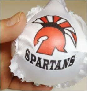 The school mascot is a Spartan and I designed the image myself. I cut one white piece for the school mascot and one piece for the school letters.